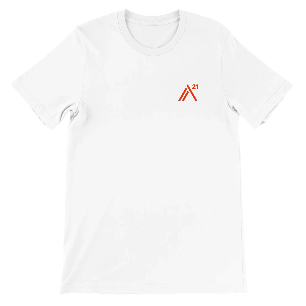 This t-shirt features the A21 logo on the front and a bold message on the back: