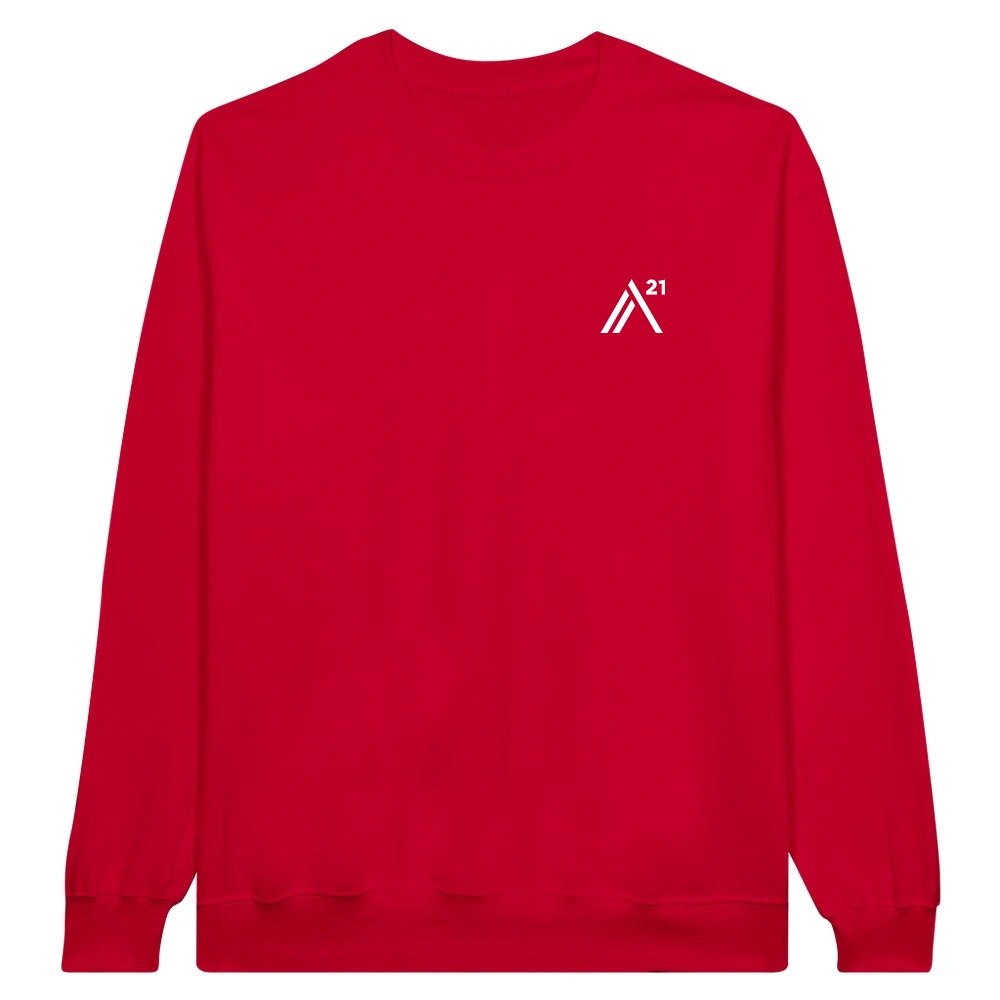 This sweatshirt features the A21 logo on the front and a bold message on the back: